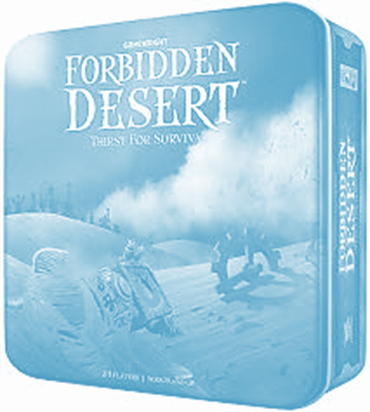 Forbidden Desert Preživetje raziskovalcev v neusmiljeni puščavi, kjer sta ključna solidarnost in deljenje virov. Skupina mora v premikajočem se pesku najti dele letečega stroja, preden vsem zmanjka vode.